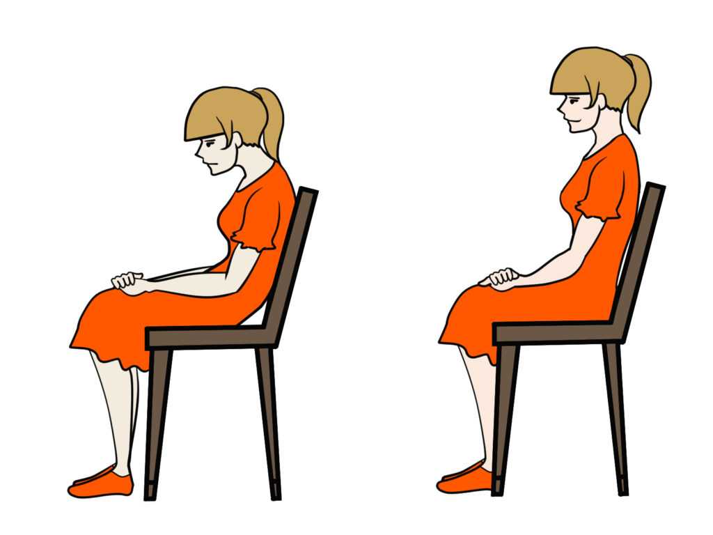- 椅子に深く座る
