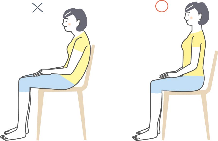 骨盤が後ろに倒れ、背中が丸くなる - 呼吸の浅さ